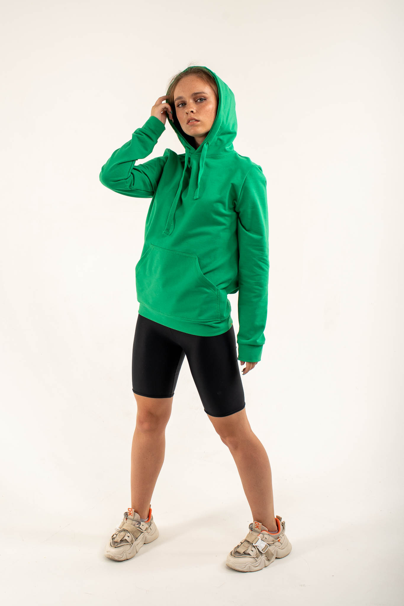 Толстовка NarpiHoody Women - Худи приталенного кроя, на полочке накладной карман «кенгуру». Горловина имеет втачной капюшон из двух деталей с подкладкой из основной ткани, имеет кулиску со шнуром, вставленным в выметанные петли. Верхний капюшон отстрочен по среднему шву ширина шва 0,5 см. По низу изделия пояс из кашкорсе. Рукав втачной с естественной линией плеча, низ обработан манжетой из кашкорсе. Шов горловины усилен киперной лентой, декоративная отстрочка ширина шва 0,5 см по горловине и поясу. Длина худи до середины бедра.